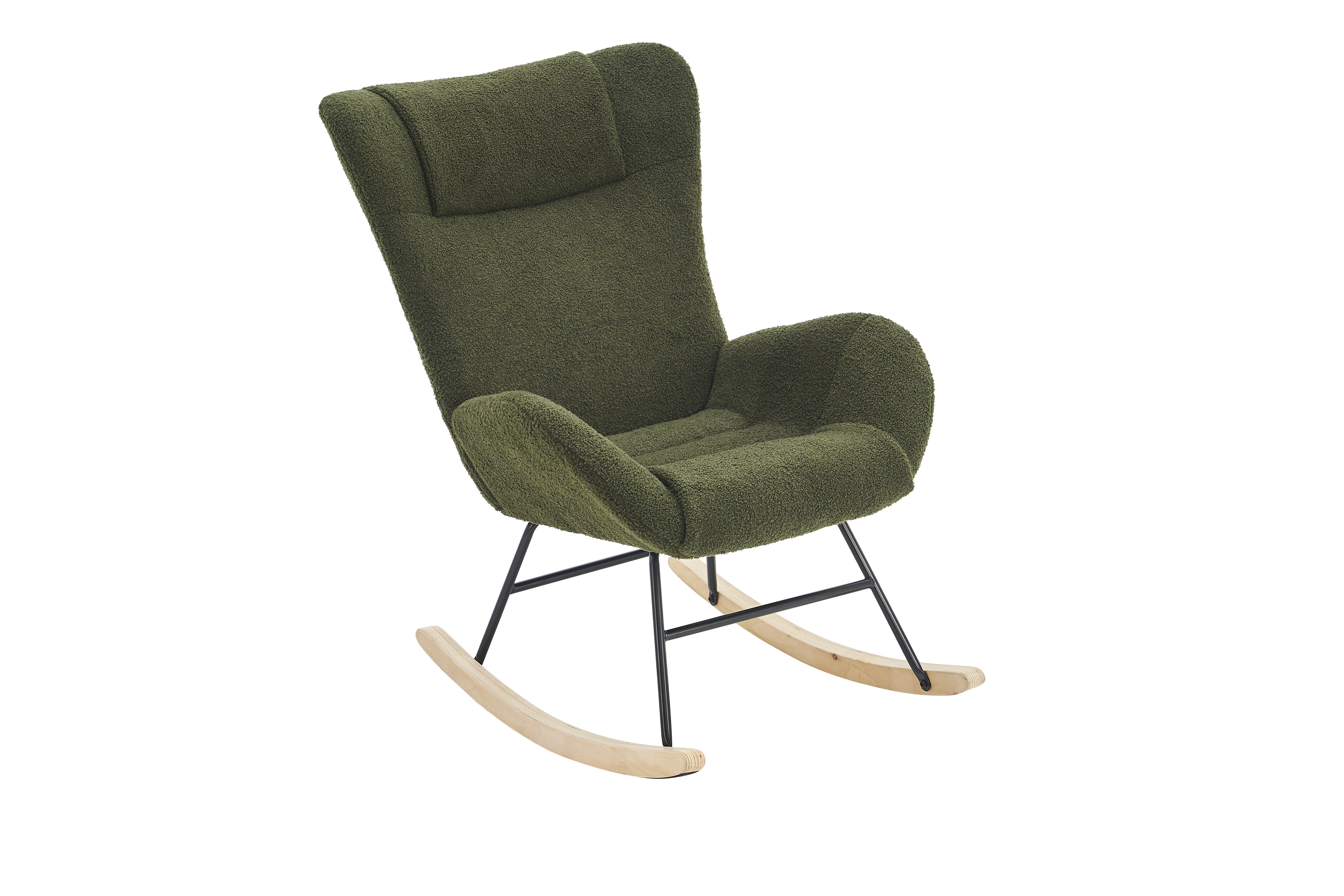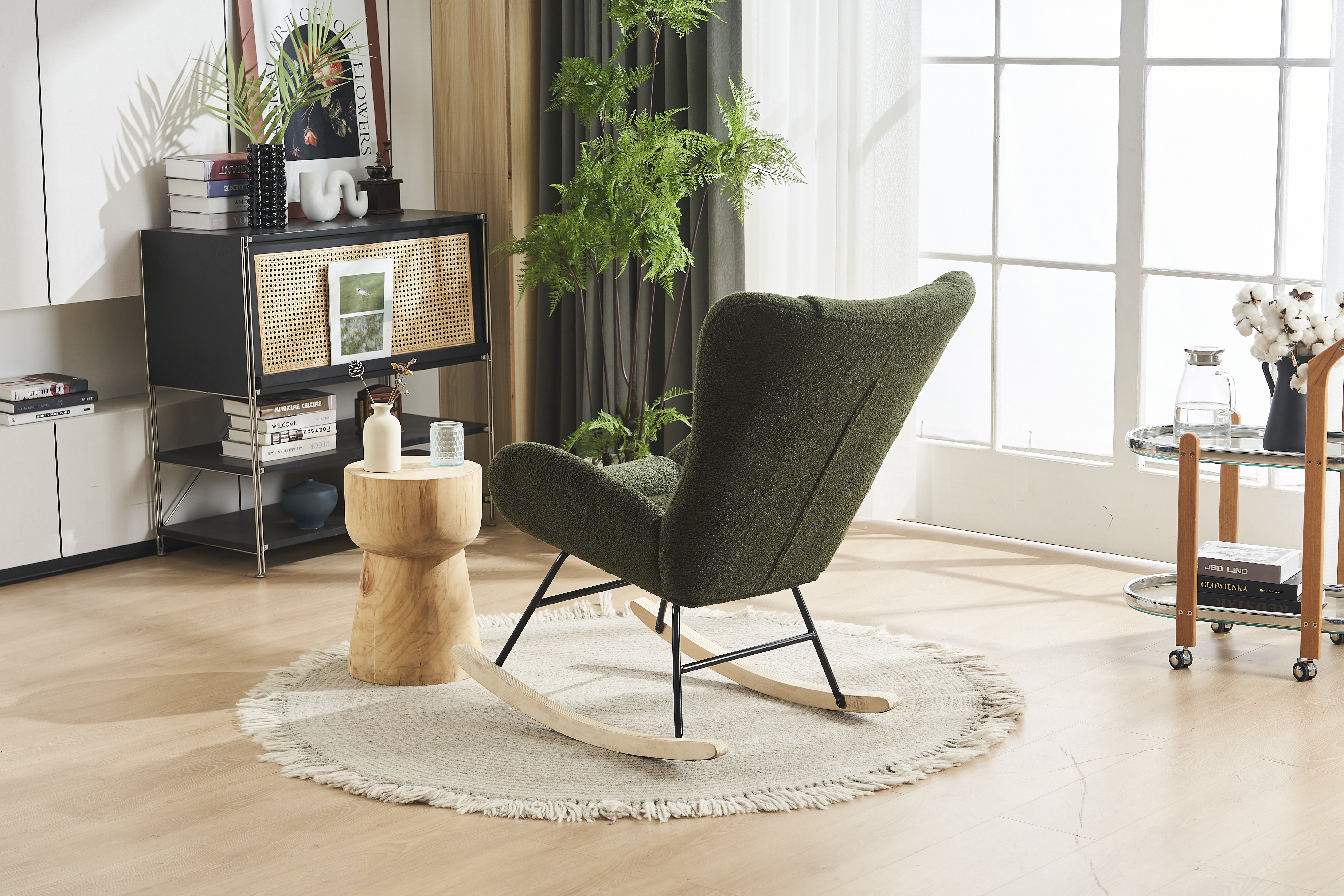 Home > Rocking Chair Nursery, Solid Wood Legs Reading Chair with Teddy Fabric Upholstered , Nap Armchair for Living Rooms, Bedrooms, Offices, Best Gift,Green