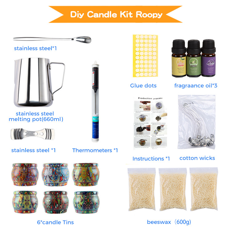600ml stainless steel cut * 1 3 packs of 1 00g beesuwax 1 Thermometer wax core clip * 1 1 * spoon, 6 * tin cans